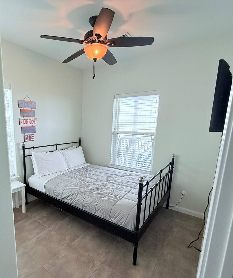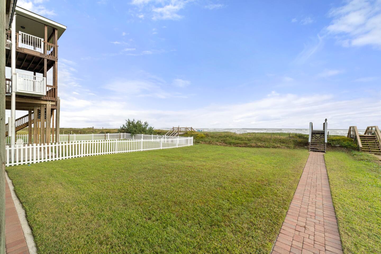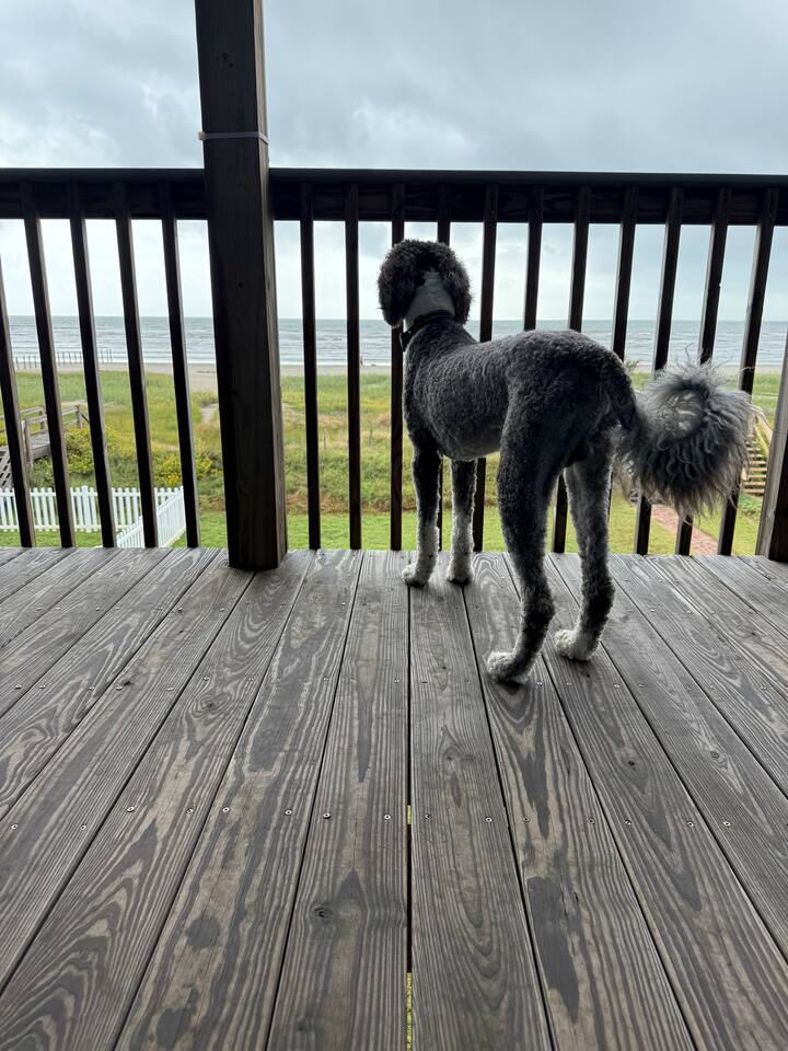 Beachfront Bliss (West End Galveston) is your front-row seat to the Gulf—managed by Stoney Creek Stays. Enjoy ocean views, epic sunrises, and a private walkway to the beach (public beach access). Sleeps 10 with 2 Kings + bunks, plus a fully fenced yard for pets. Stream on smart TVs, cook in a stocked kitchen, rinse off in the outdoor shower, and park 4–6 cars in the driveway.