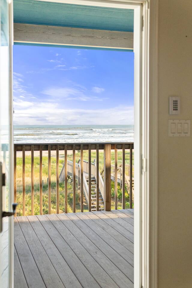 Welcome to Beachfront Bliss — a West End Galveston beachfront getaway with ocean views + a private walkway to the beach, managed by Stoney Creek Stays.