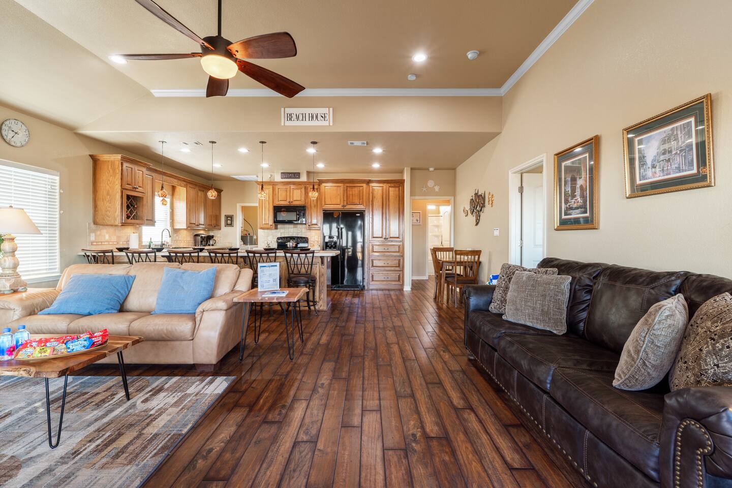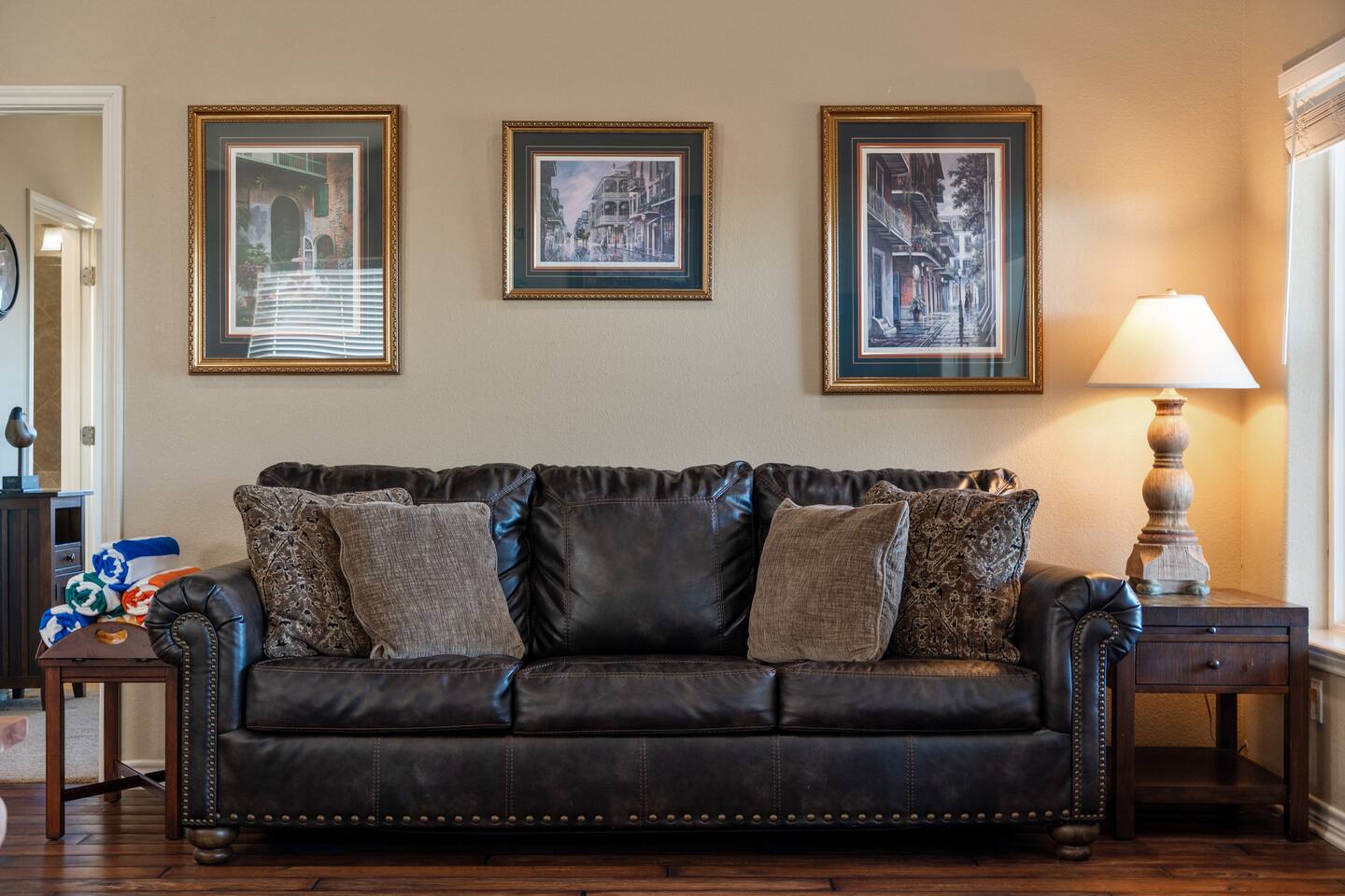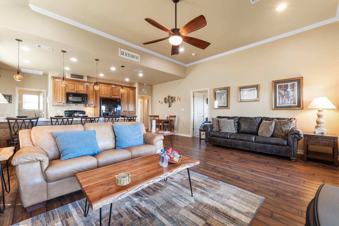 This gorgeous retreat comfortably sleeps 10 guests across 3 bedrooms plus a queen sleeper sofa.
