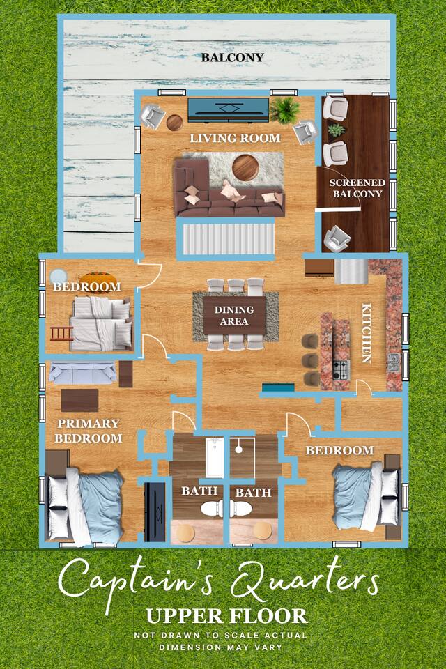 Captain’s Quarter is a single-family home in Crystal Beach, TX offering privacy, space, and character on 1.5 acres. Ideal for families, groups, and pet owners looking for a peaceful coastal getaway with room to spread out.