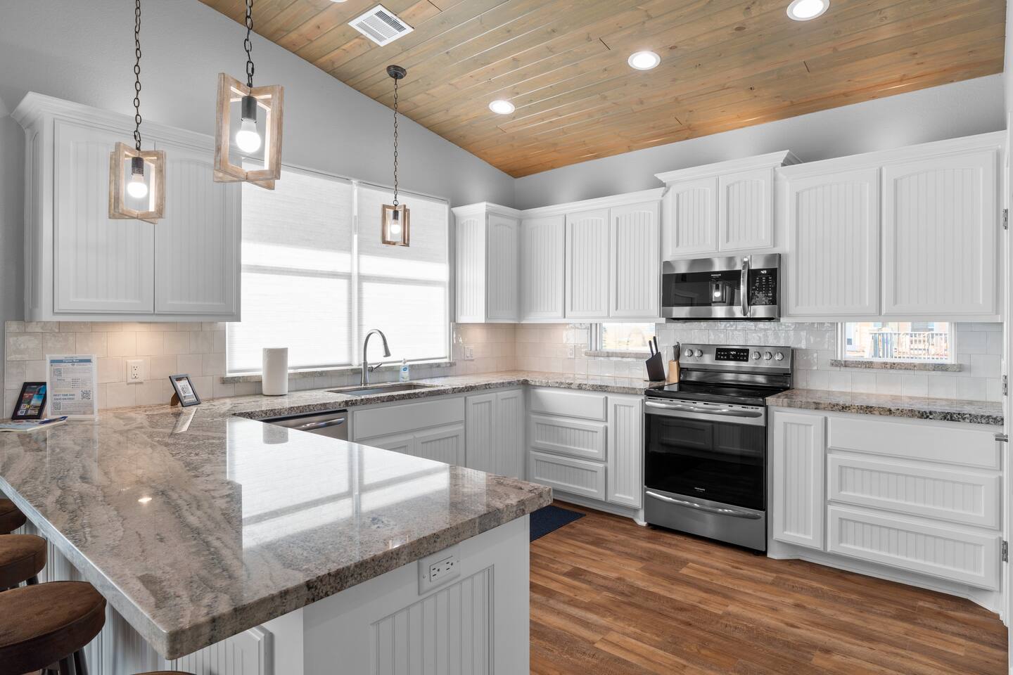 This beautiful home comfortably sleeps up to 10 guests across three bedrooms and includes two full bathrooms.