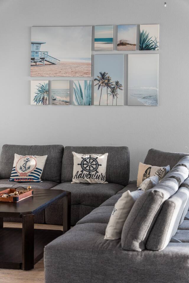 - Living Room: Features a plush couch and chair, a large HDTV with Roku for streaming, and incredible sunrise views right from the couch.